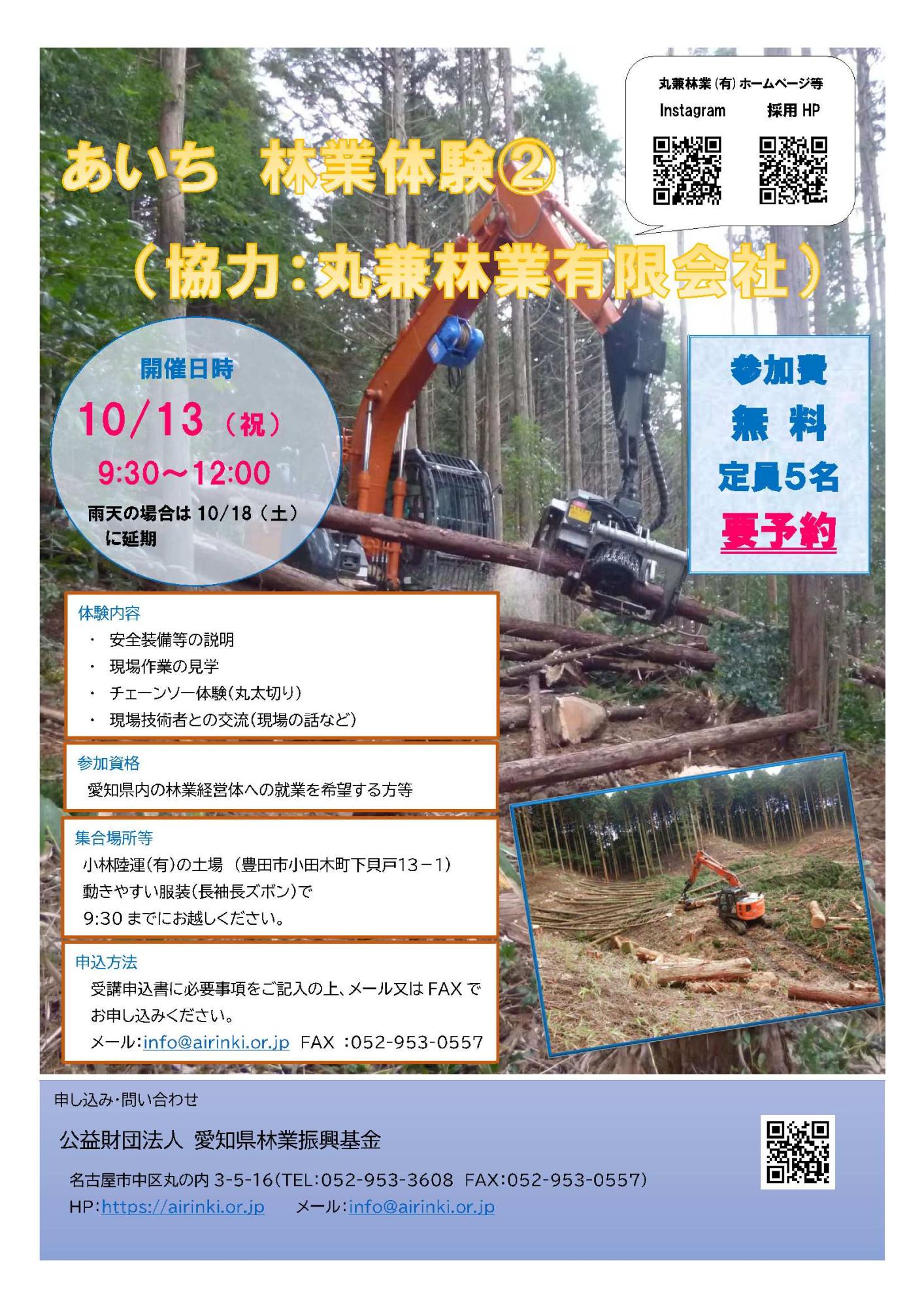 【愛知県】林業体験参加者募集! 10/13丸兼林業㈲