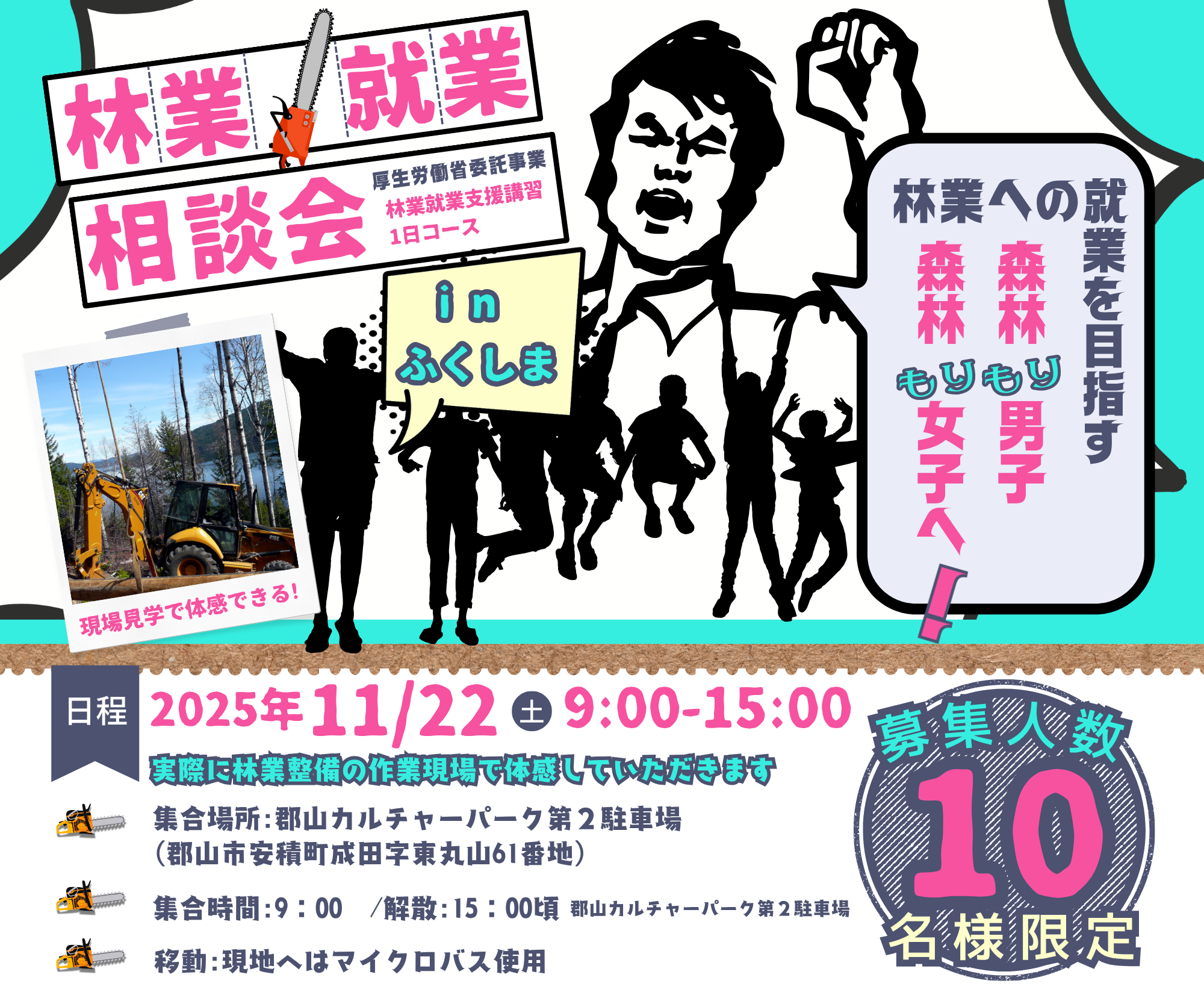 「林業就業相談会 in ふくしま(林業就業支援講習・1日コース)」を開催します✨