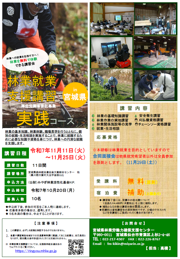 【宮城県】令和7年度 林業就業支援講習 実践コース in宮城県の参加者を募集します。