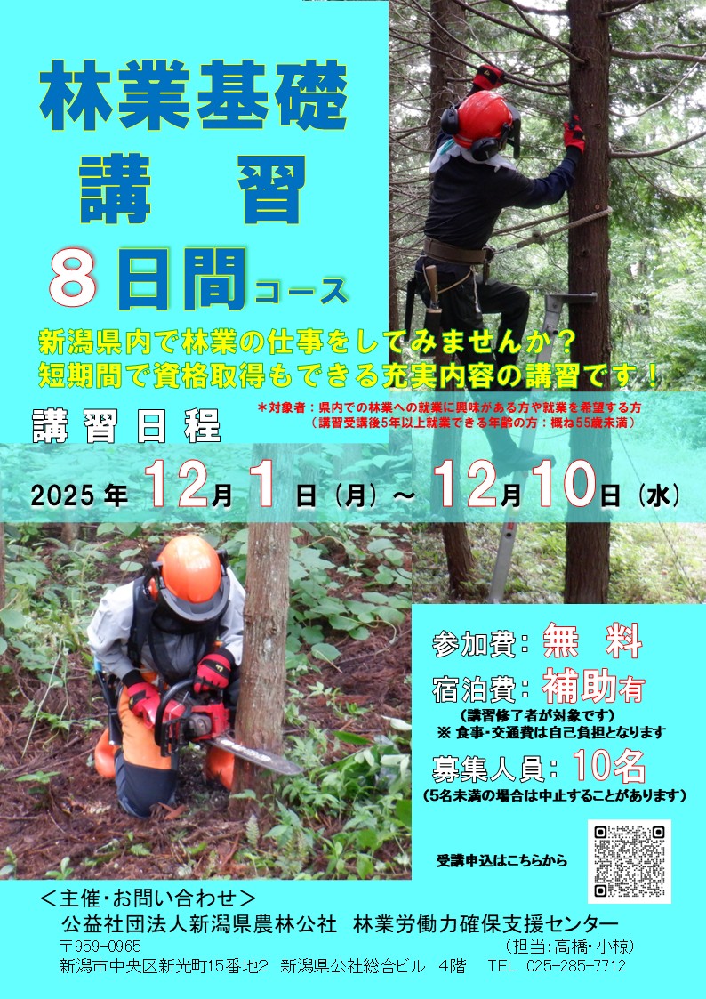 | 主催 | 公益社団法人 新潟県農林公社(新潟県林業労働力確保支援センター) |