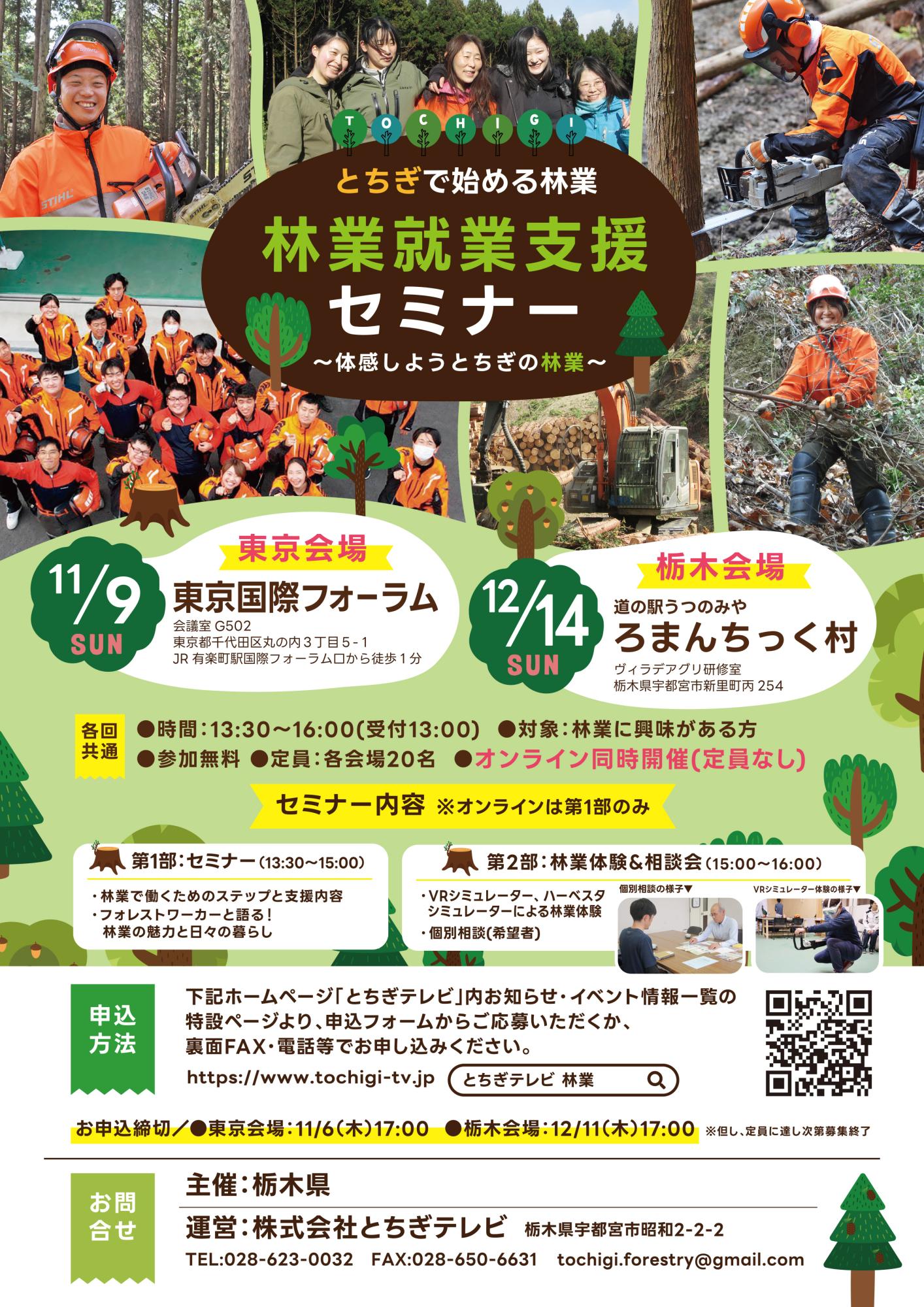 🌳栃木県🌳参加者募集中!「林業就業支援セミナー(栃木会場)」を12月14日(日)に開催します(^^♪