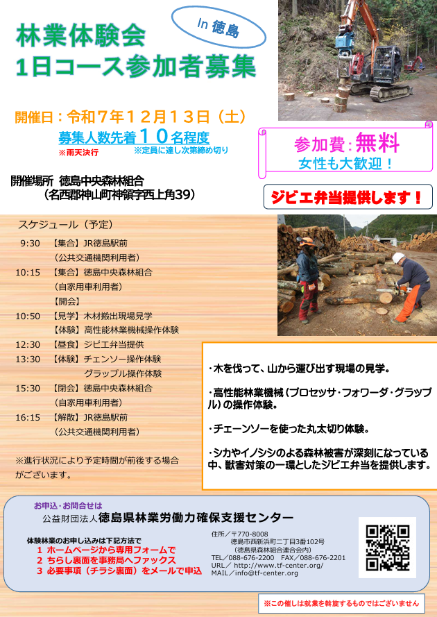 | 主催 | 公益財団法人 徳島県林業労働力確保支援センター |