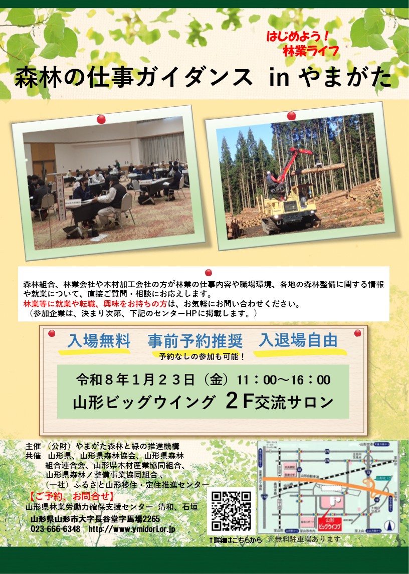 【山形県🍒】 『森林の仕事ガイダンスinやまがた』 を開催します❗ (1/23(金)開催)