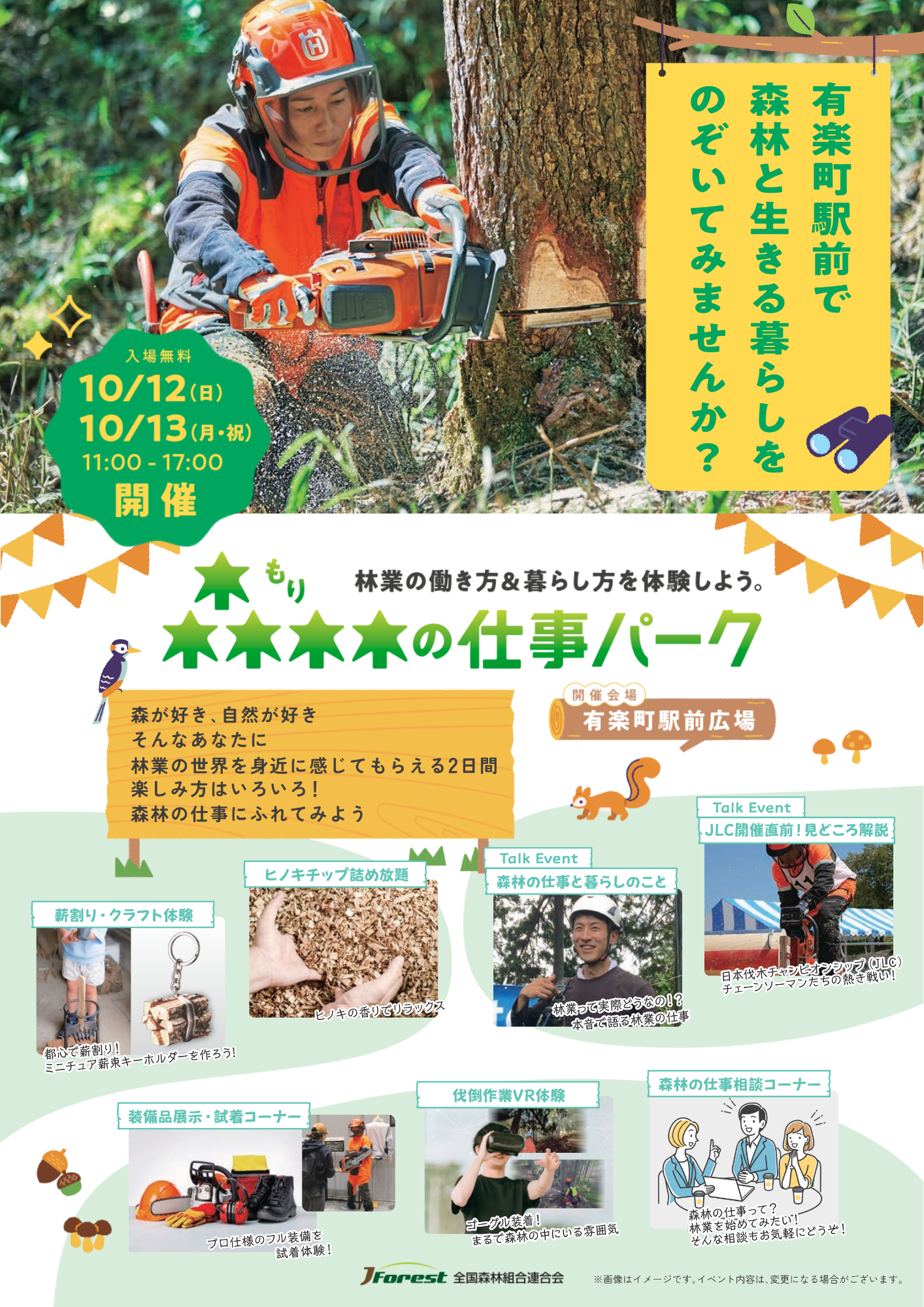 【10/12(日)~13日(月祝)】森林の仕事パークが東京・有楽町駅前広場で開催!!